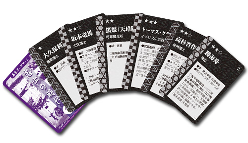 坂本竜馬、勝海舟、高杉晋作、吉田松陰、後藤象二郎、トーマス・グラバー、篤姫、など30人を超える人物がカードで登場!!