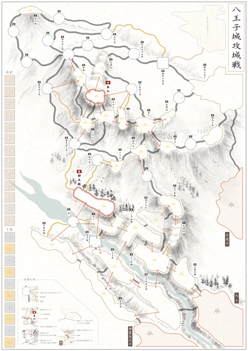 プレイヤーは天下統一を目指す豊臣秀吉方の勢力か、それを阻止すべく八王子城に籠城を続ける北条方の勢力を指揮して雌雄を決します。