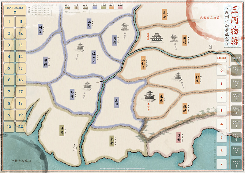『三河物語』は、2人用のウォーゲームです。プレイヤーは松平家康を中心とする武家方と三河の地場勢力でもある一向宗一揆方に分かれて、三河地域の覇権を争います。