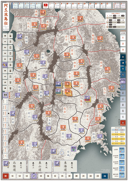 第21号は平安時代初期の東北における38年にわたる朝廷と蝦夷の争いをテーマにした作品です。自陣営の駒を動かしたり、勢力への調略はカードを使用して進めていきます。京より遠く離れた場所でありながら物量を頼り戦う朝廷軍と地の利を活かし奮戦する蝦夷軍。果たして東北の支配権はどちらが治めることになるでしょうか?