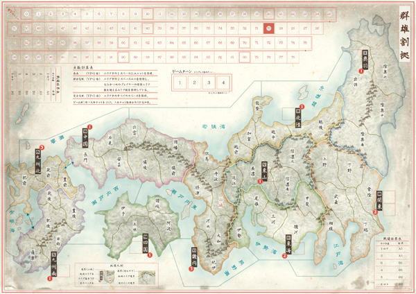 第22号の付録『群雄割拠』は、戦国時代をテーマにした3〜4人でプレイできる多人数ゲームです。
