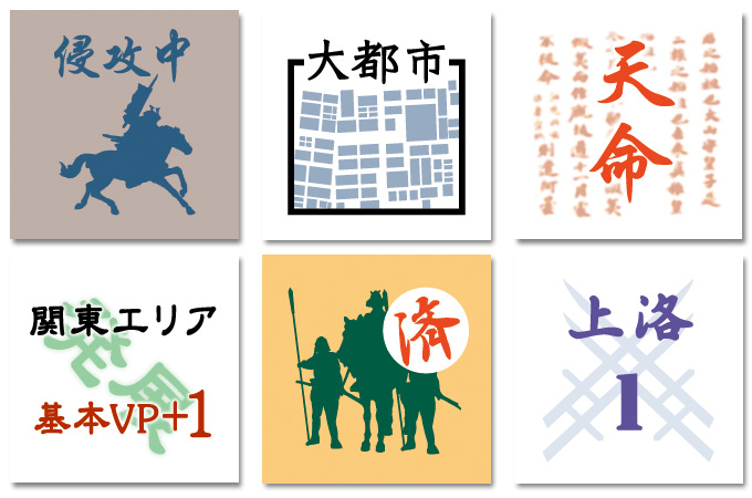 プレイヤーは3回の手番(3人でプレイする場合は4回手番)の中で、毎ターン選択する群雄を動かし勢力を拡大して、自分の支配している土地や特典から得られる合計点で勝敗を決します。